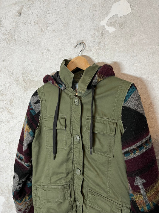 Maharishi cargo utility assymetrical clasp canvas jacket - L