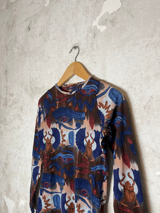 Vintage *RARE* 1999 Jean Paul Gaultier aztec longsleeve mesh top - S